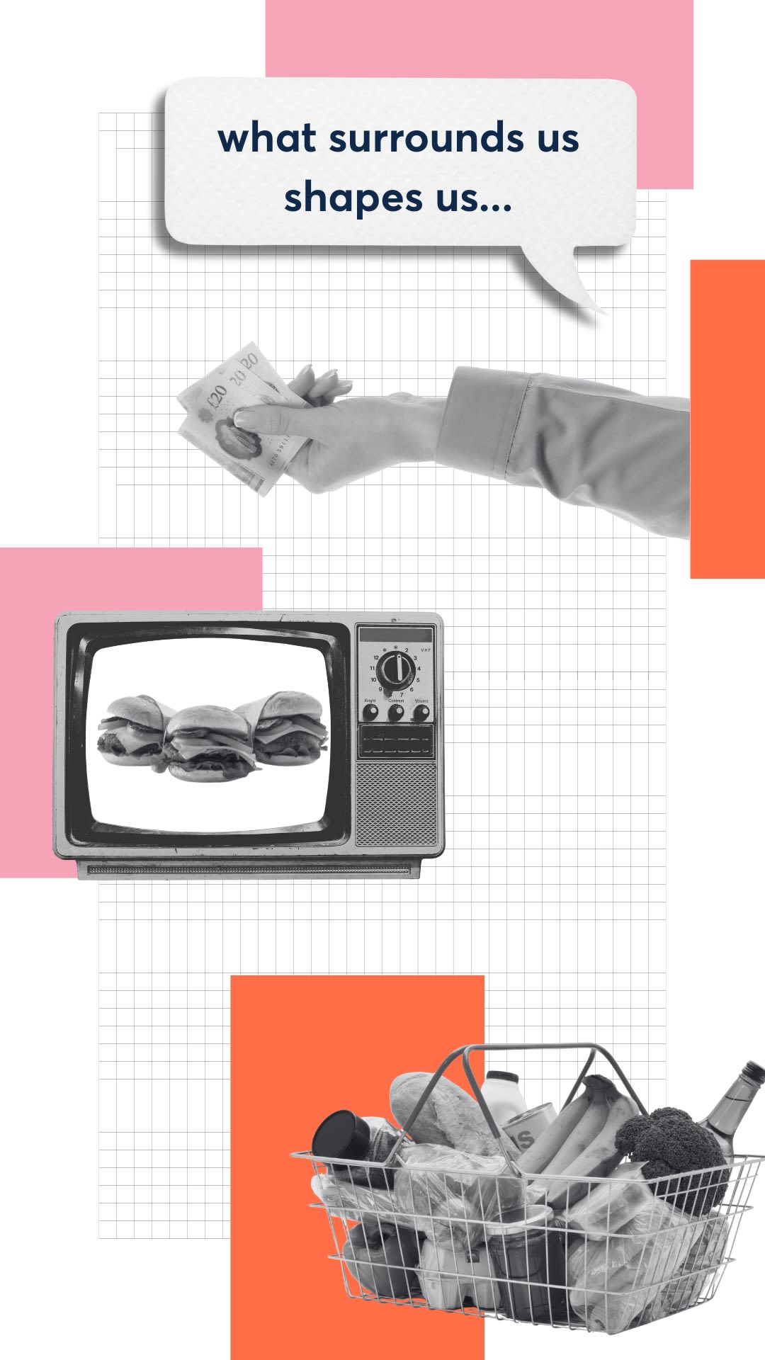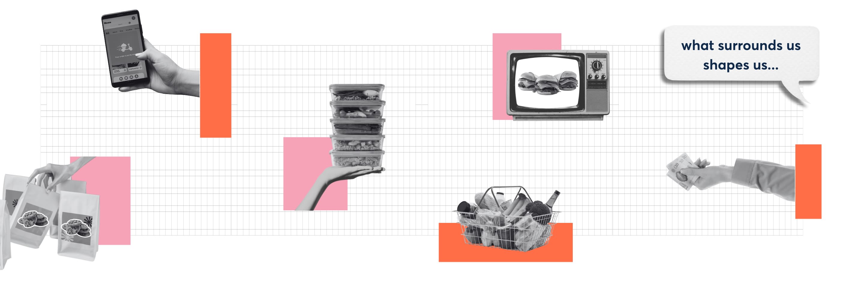 The food environment is how food is promoted, advertised and displayed, how much it costs us and how convenient it is to buy. Our food environment profoundly affects what we eat and, consequently, our health. It's easy to think our food choices are entirely personal, but our eating habits are constantly shaped by our surroundings. Availability and convenience drive many decisions: when healthy options are scarce or require effort, we naturally choose what's accessible. This isn't just about where we live – it encompasses everything from the shops we pass and strategically placed snacks at checkouts, to targeted social media content and appetising photos on delivery apps on our phones. Even our social circles influence what feels normal to eat.