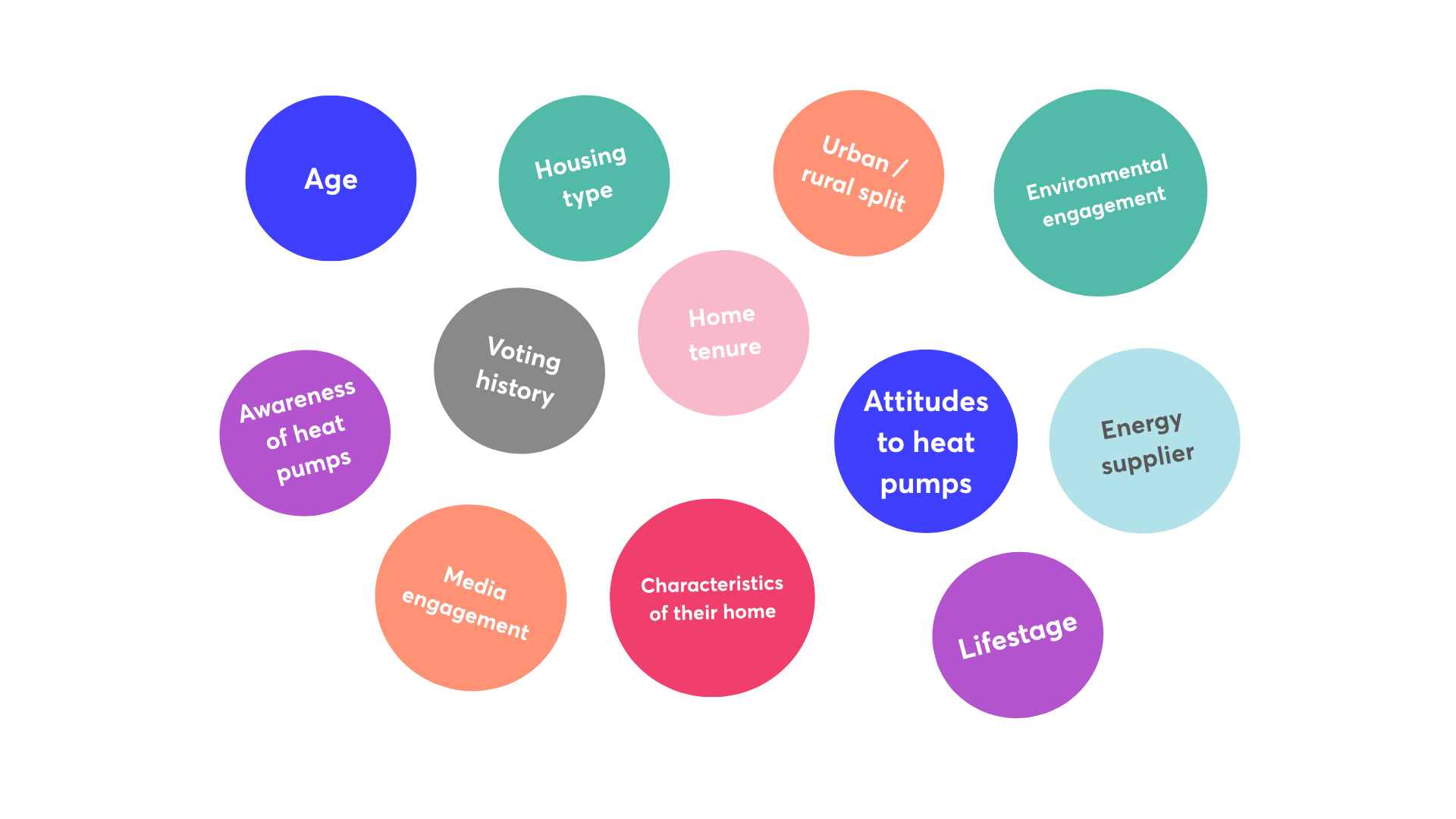 We wanted to understand how different UK households feel about heat pumps, including their barriers and motivations to installing one in their home. We worked with Experian - due to their expertise in segmentation data - and MCS - the standards organisation for low-carbon installations - to produce a detailed segmentation of the population to better understand their relationship to heat pump adoption. You can read more about our methodology here.